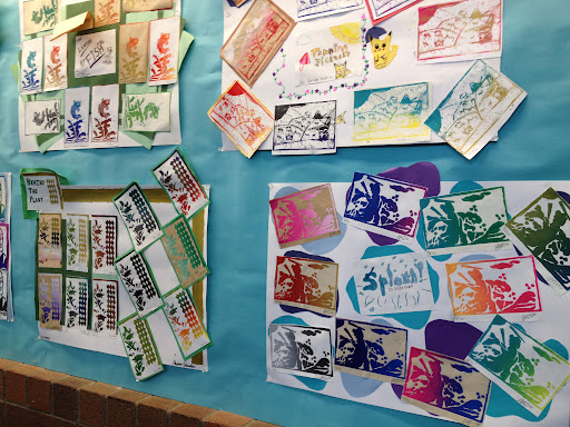9. Use water based inks for easy cleanup. Don’t waste ink and if they make too much see if another student needs that color and share. Plan ahead the colors to use, change values and go opposite the normal colors to give interest.