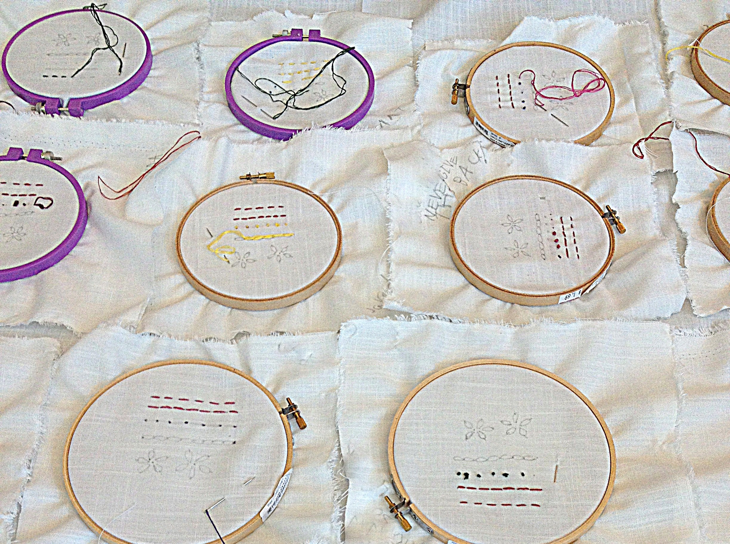 Over a period of 2 weeks, the students created these stitch samplers. These are their first stitches!