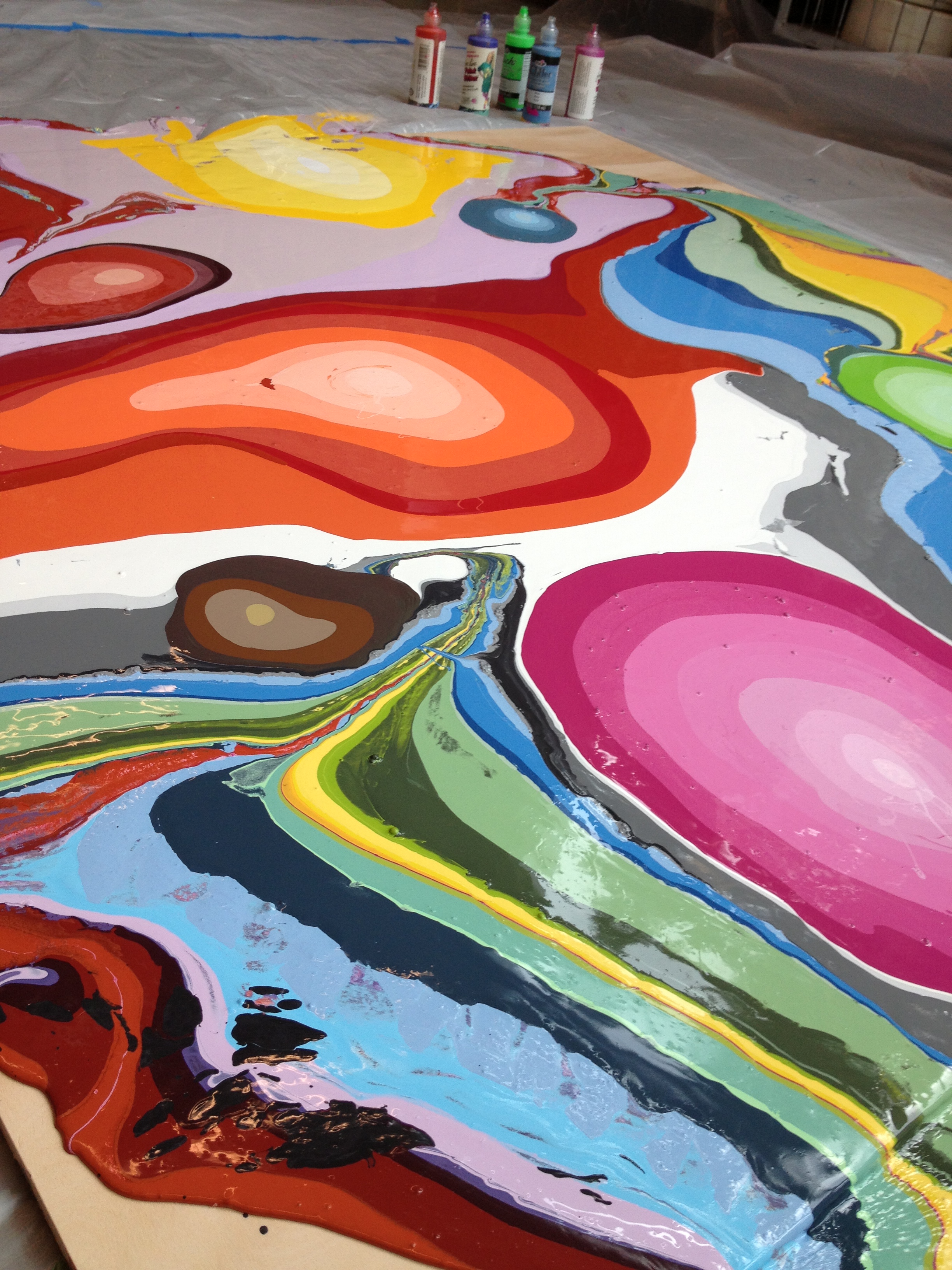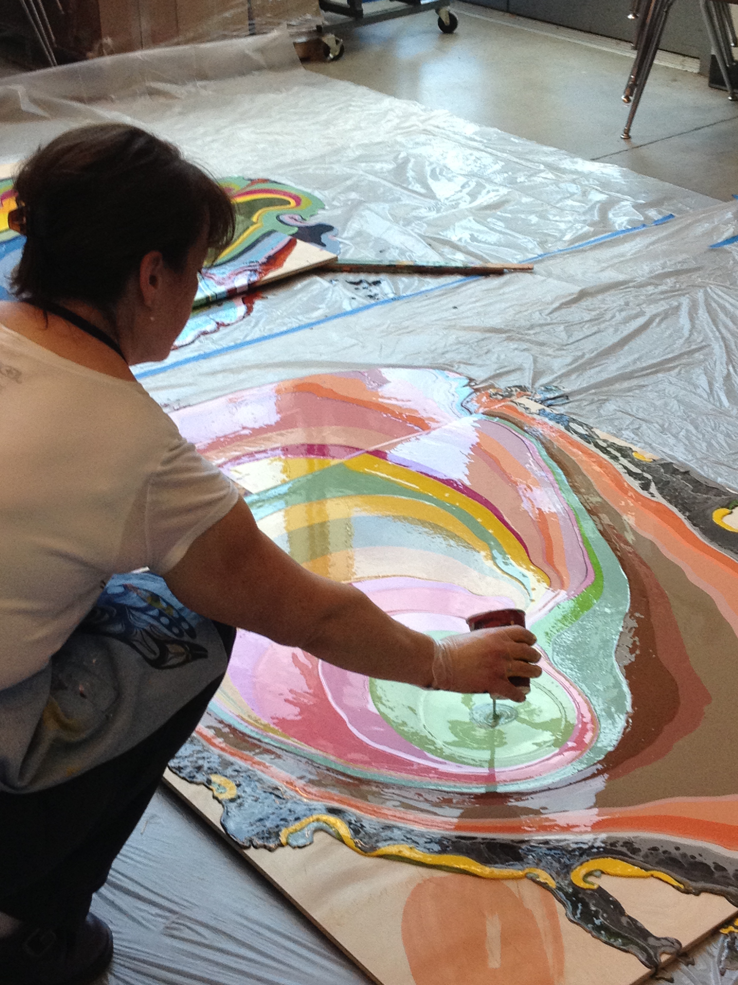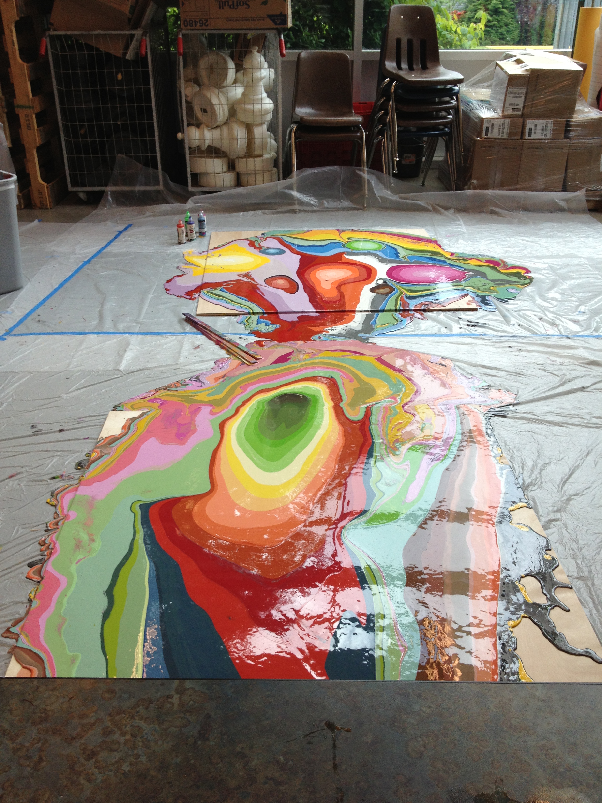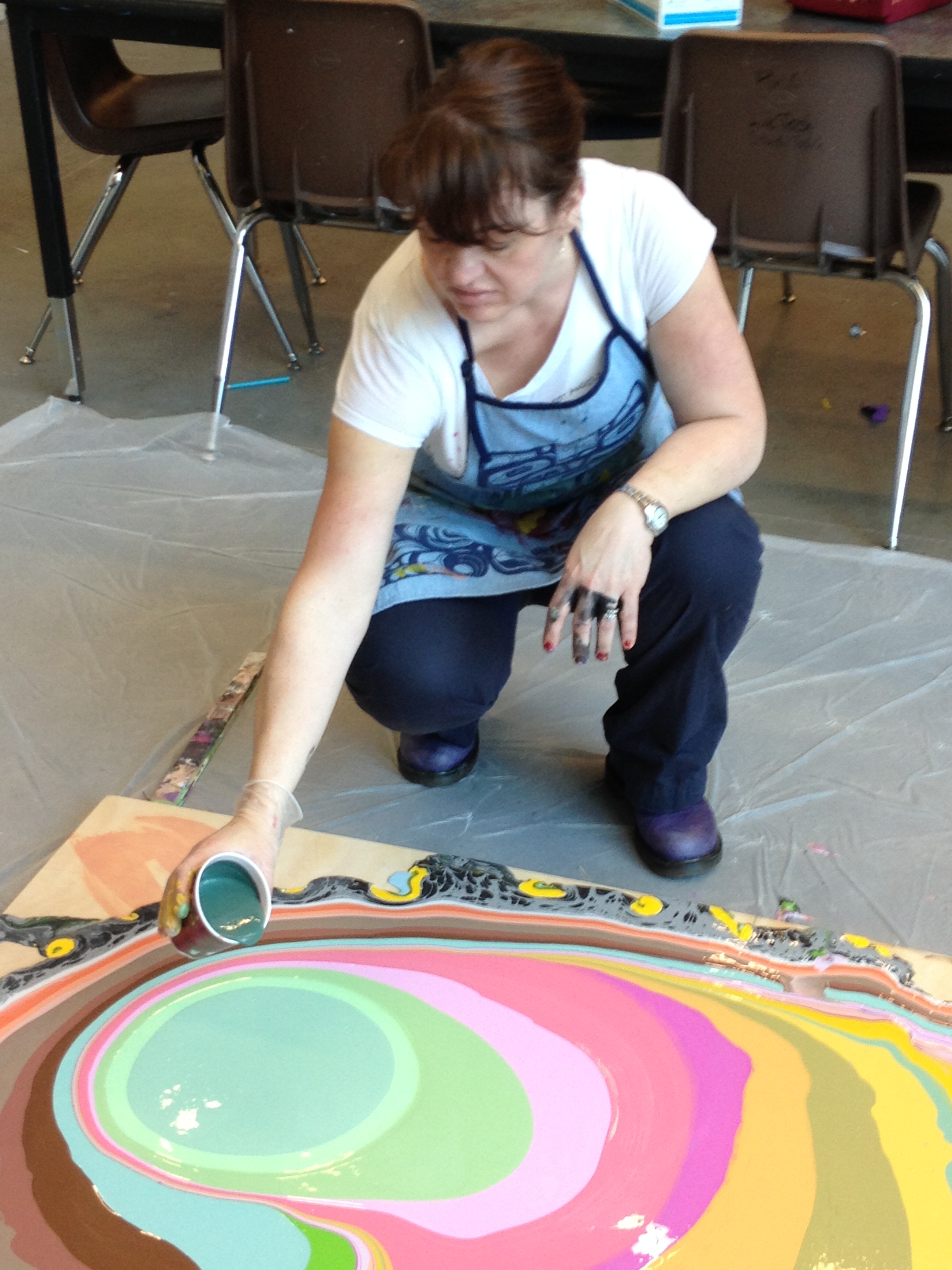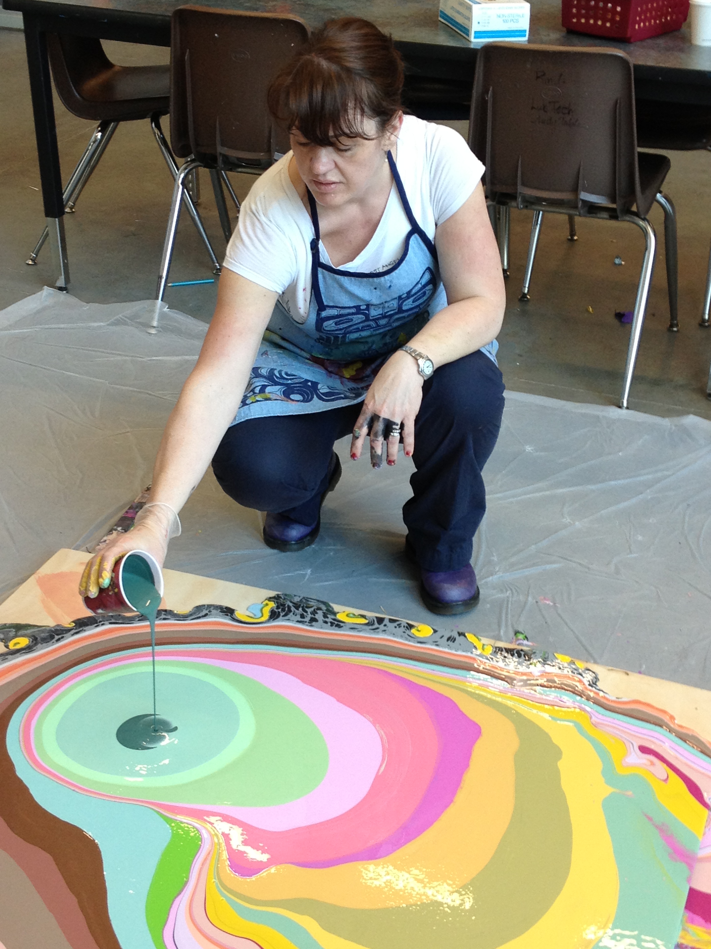 Residency 2015: Pour painting with Staff at Horace Mann Elementary School